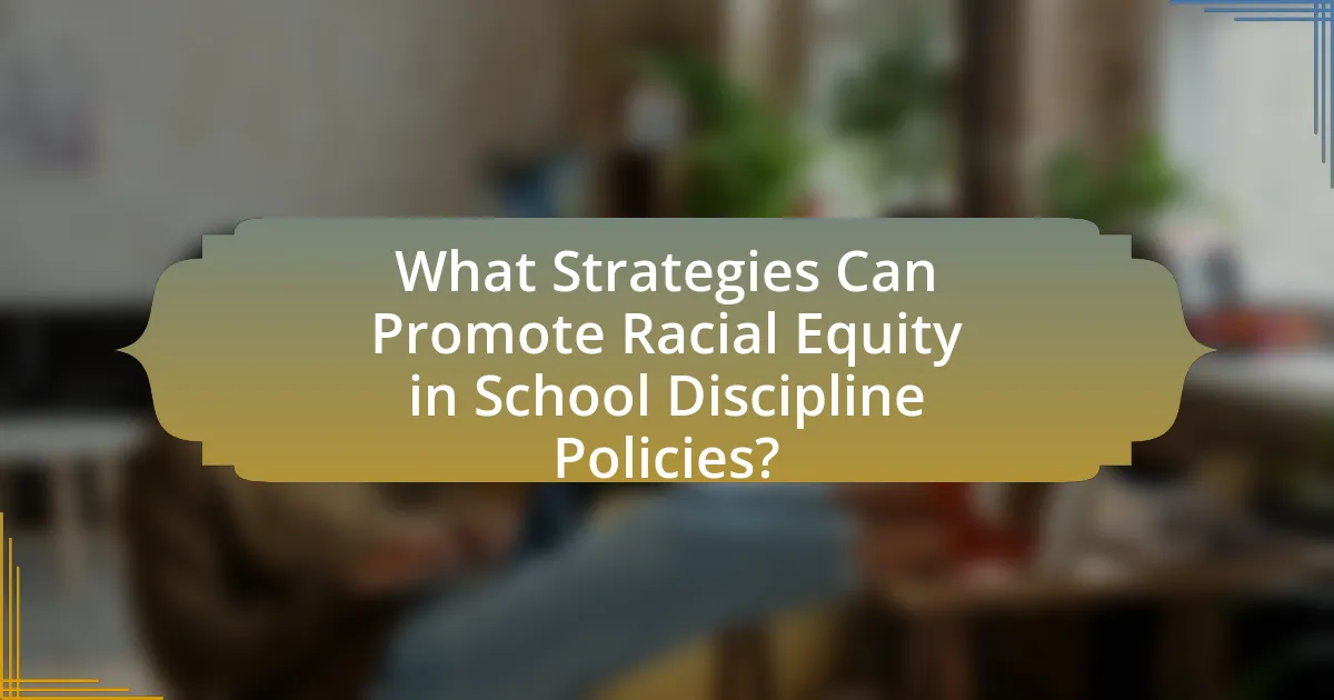 Implementing restorative justice practices can promote racial equity in school discipline policies. Restorative justice focuses on repairing harm and fostering dialogue rather than punitive measures, which disproportionately affect students of color. Research indicates that schools utilizing restorative practices have seen reductions in suspension rates and improved relationships among students and staff, contributing to a more equitable environment. For instance, a study by the University of Chicago found that schools adopting restorative justice approaches experienced a 50% decrease in suspensions among Black students, highlighting the effectiveness of this strategy in addressing racial disparities in discipline.